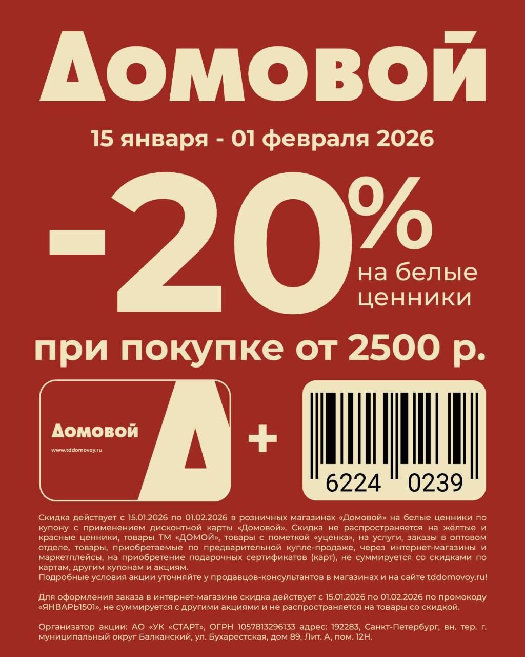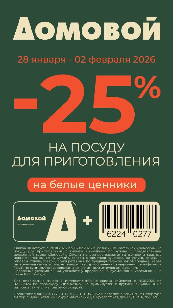 Купоны на скидки в магазинах «Домовой» Январь - Февраль 2026