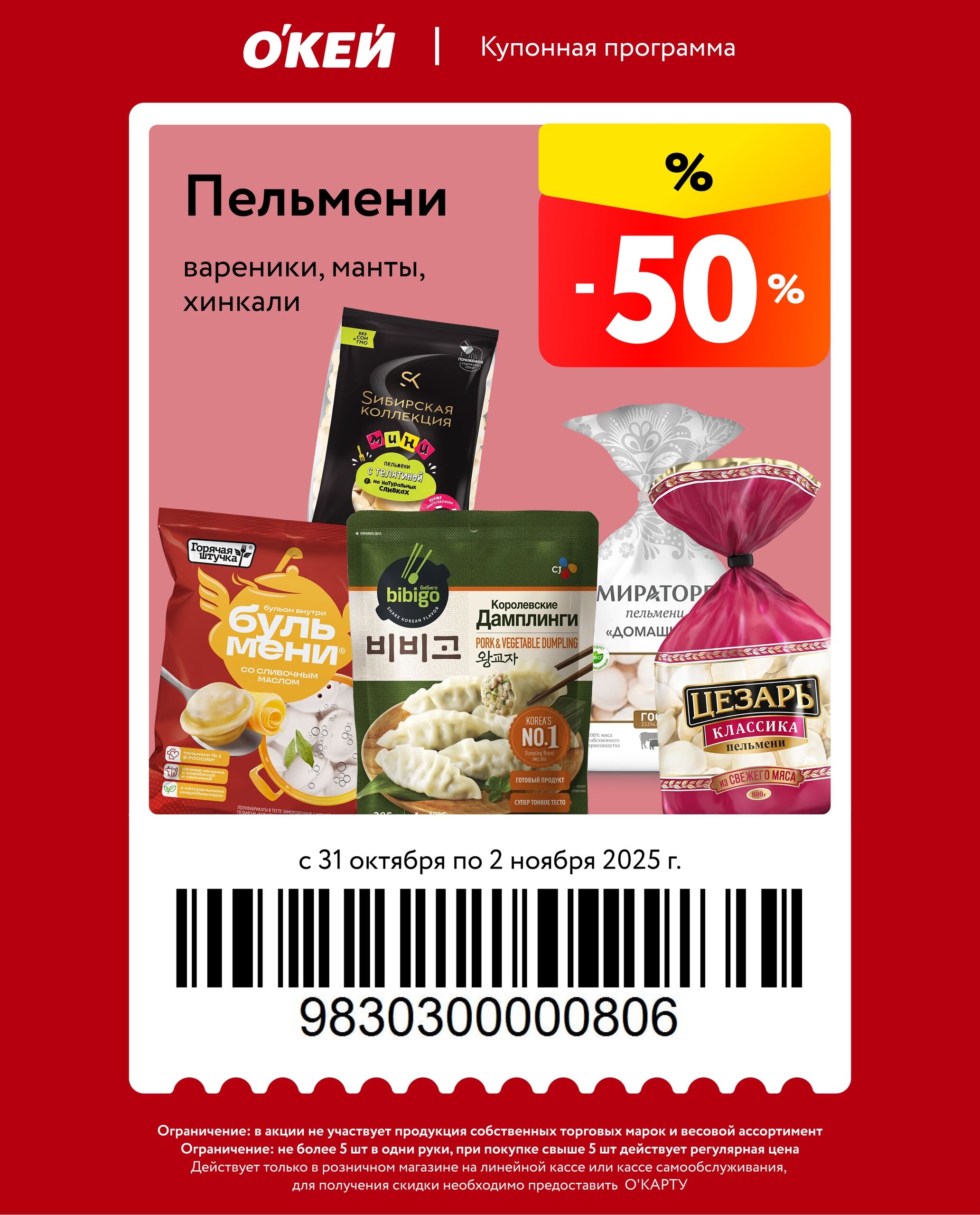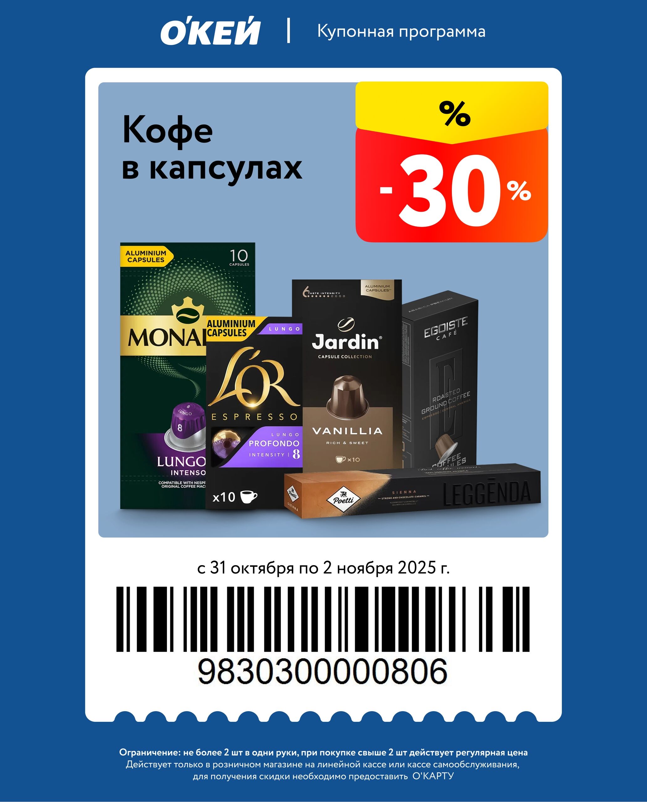 Гипермаркеты "О'КЕЙ" — Купоны на скидки на Октябрь-Ноябрь 2025
