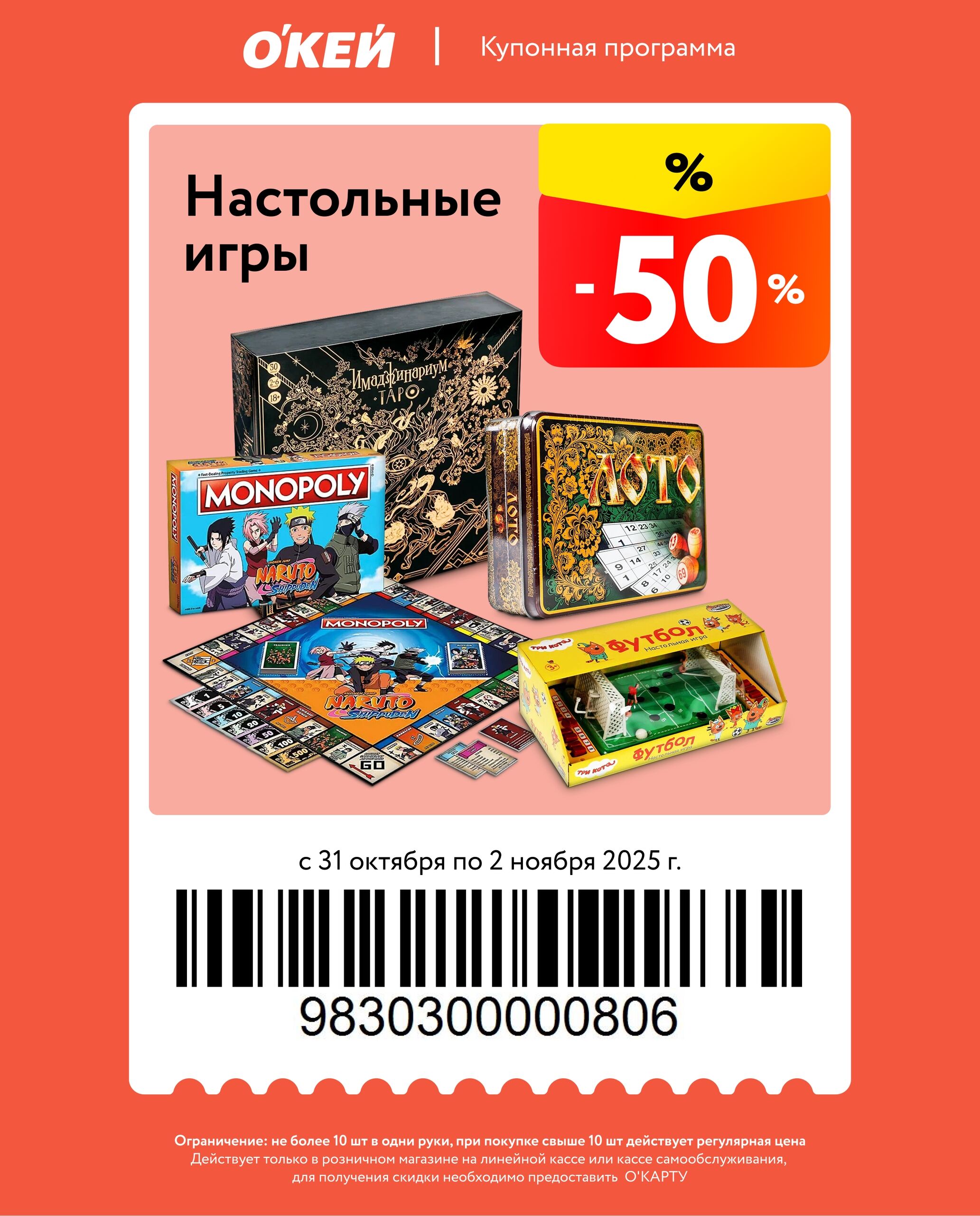 Для получения скидки примените купоны на кассе гипермаркета вместе с вашей О'КАРТОЙ.*