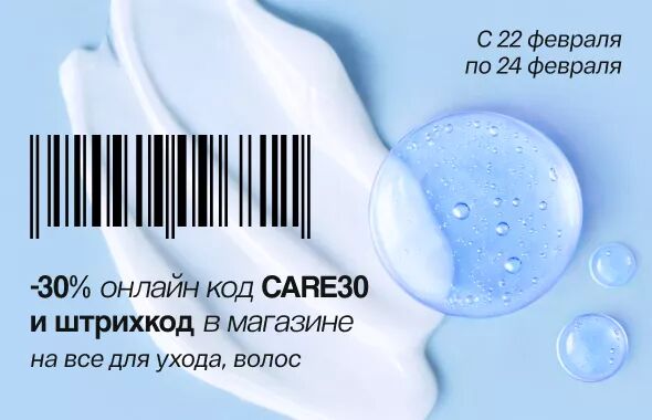 Скидка 30% по купону (или промокоду онлайн) на средства для ухода за лицом, телом и волосами.