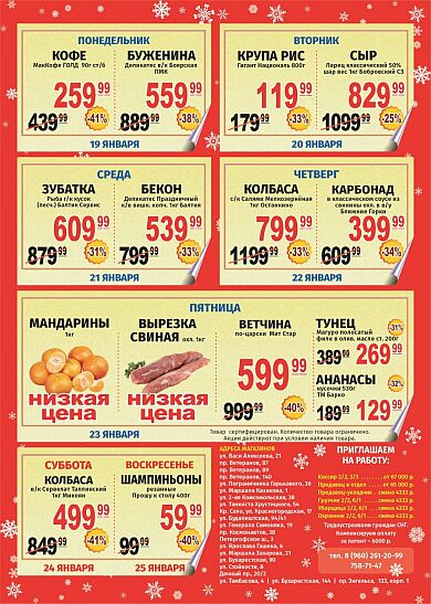• 19 - 25 января акции "Предложение недели" и "Лучшая цена".