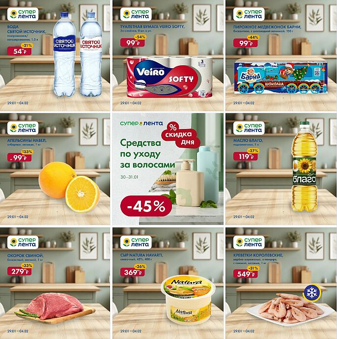 С пятницы по воскресенье, 30 января - 1 февраля в Гипер Ленте действуют Купоны на группы товаров с Картой № 1.