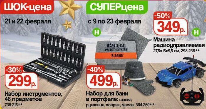 • 1 - 23 февраля акции "Шок-цена" и "Супер-цена" (действуют в определенные дни).