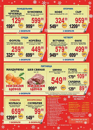 • 2 - 8 февраля акции "Предложение недели" и "Лучшая цена".