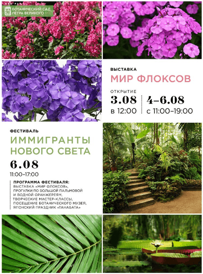 Электронные билеты на выставку флоксов и Фестиваль "Иммигранты нового света" можно приобрести через приложение: vk.com/app4711524_-14060510#events